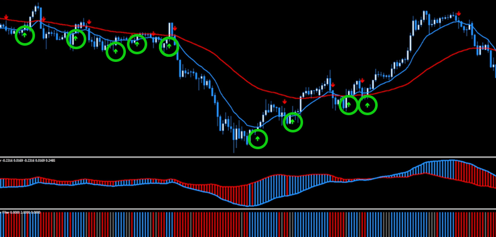It uses another indicator called the Viper Filter. Which is actually 2 custom indicators in 1.